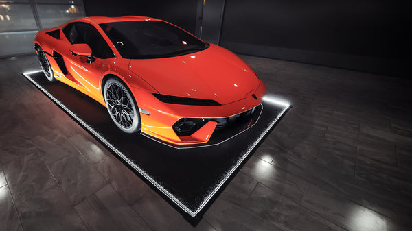 16x7 or 16x8 mats for the finest automobiles. Full perimeter illumination and customization options.